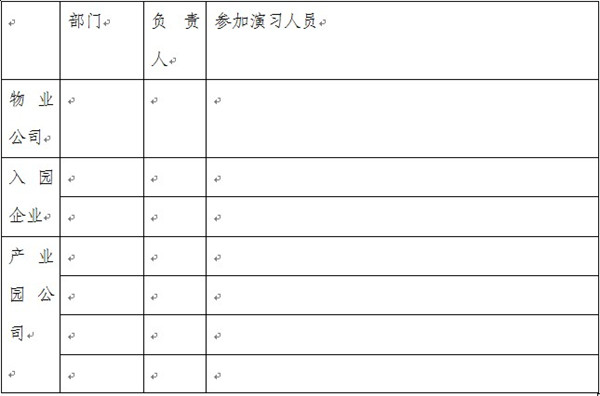 注意:要求產(chǎn)業(yè)園公司和物業(yè)公司所有人員參加消防演習。